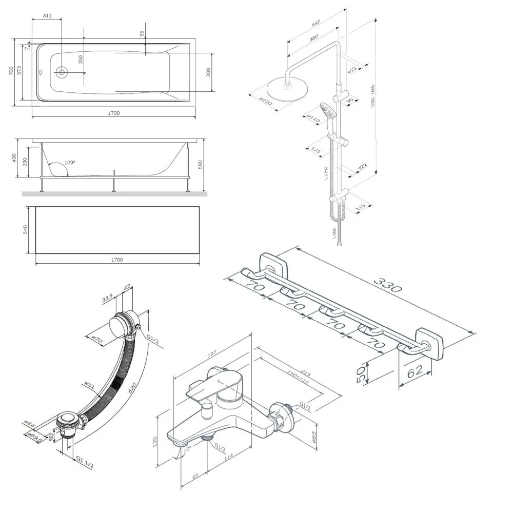 Акриловая ванна AM.PM Gem WK90GI в комплекте с аксессуарами