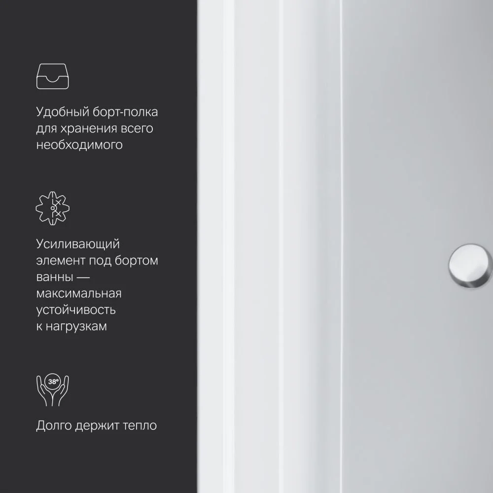 Особенно удобная деталь: филигранно очерченная полка встроенная в борт ванны которая позволит держать ваши косметические средства всегда под рукой.