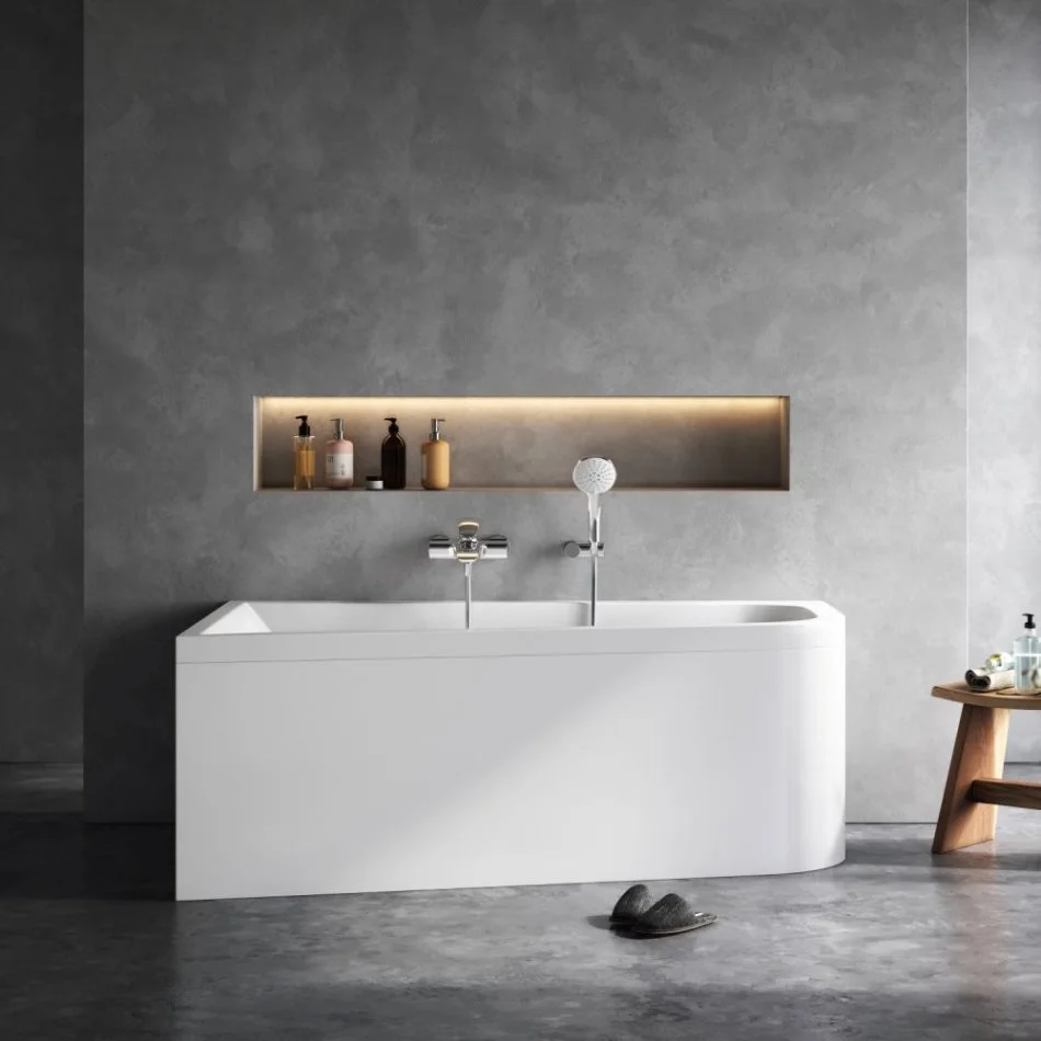 За счет низкой теплопроводности и теплоемкости акрила ванна поддерживает температуру набранной воды.