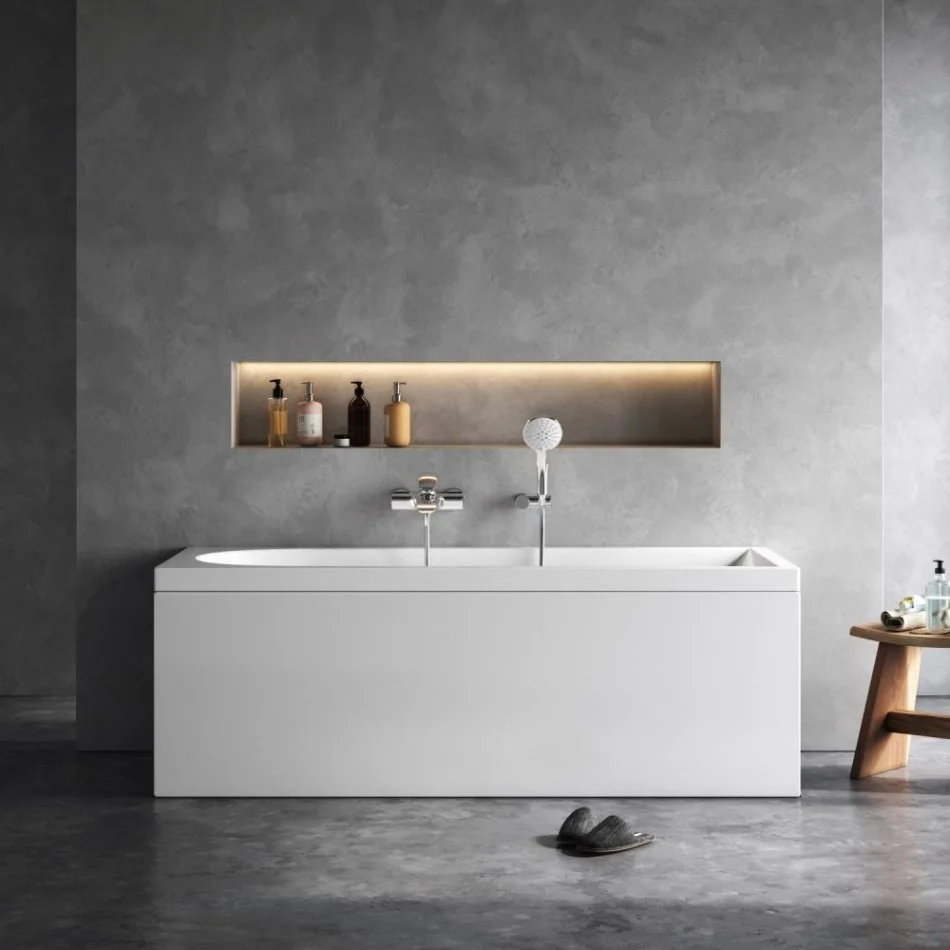 За счет низкой теплопроводности и теплоемкости акрила ванна поддерживает температуру набранной воды.