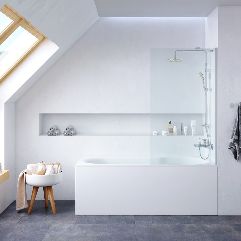 Акриловая ванна на прочном каркасе стеклянная шторка на ее борт душевая система с верхним душем и смеситель для ванны - full-house комплект для тех кто ценит удобство и приятный внешний вид в каждом продукте. А дополнить интерьер вашей ванной позволит крючок для полотенец идеально вписывающийся в стилистику всего набора.