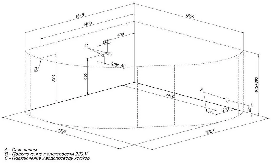 Купить Акриловые ванны производства Aquanet (Россия), коллекция Bellona, код товара: 215293 можно выгодно в Сантемо.ру: