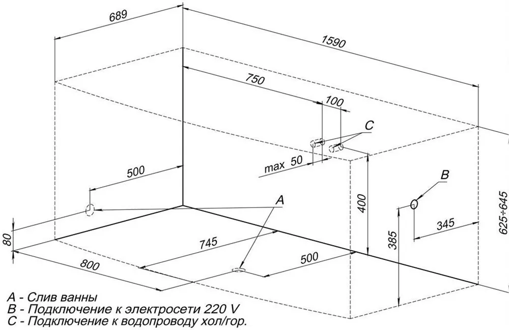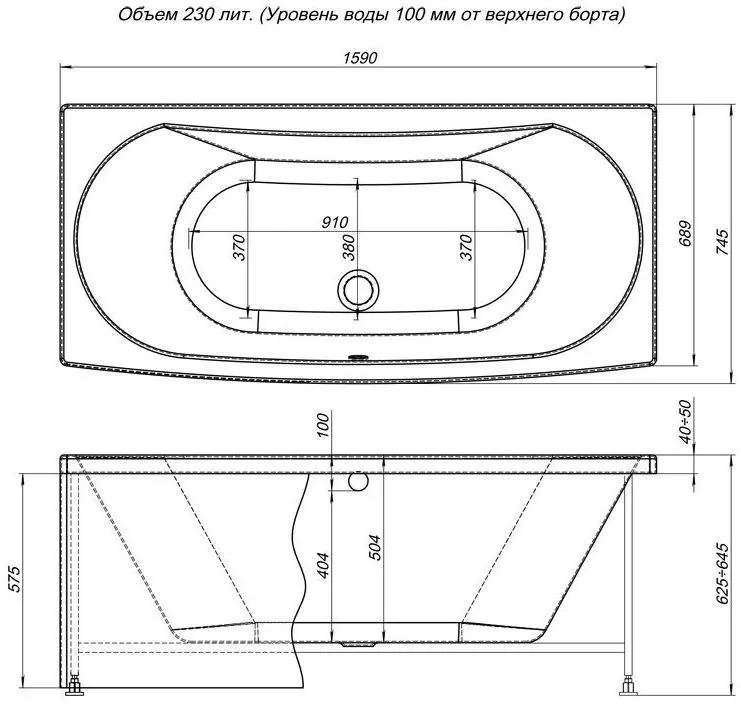 Фронтальная панель, каркас, а также слив-перелив в стоимость не входят.