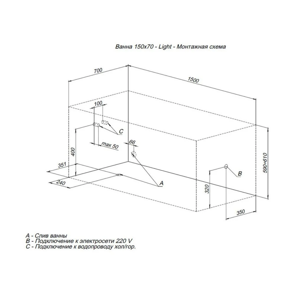 Купить Акриловые ванны производства Aquanet (Россия), коллекция LIGHT, код товара: 215279 можно выгодно в Сантемо.ру: