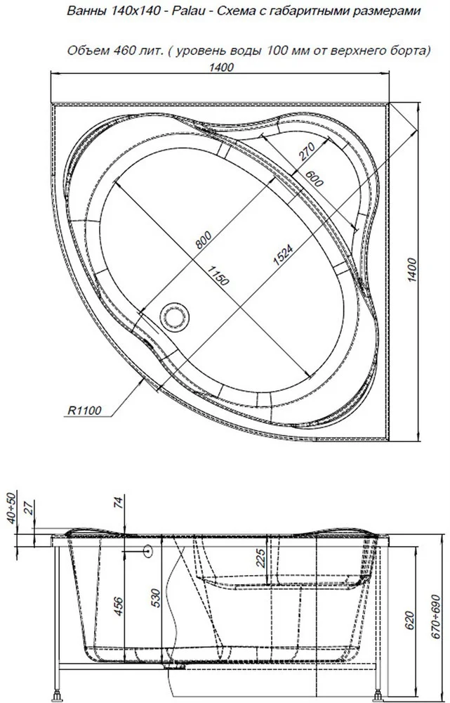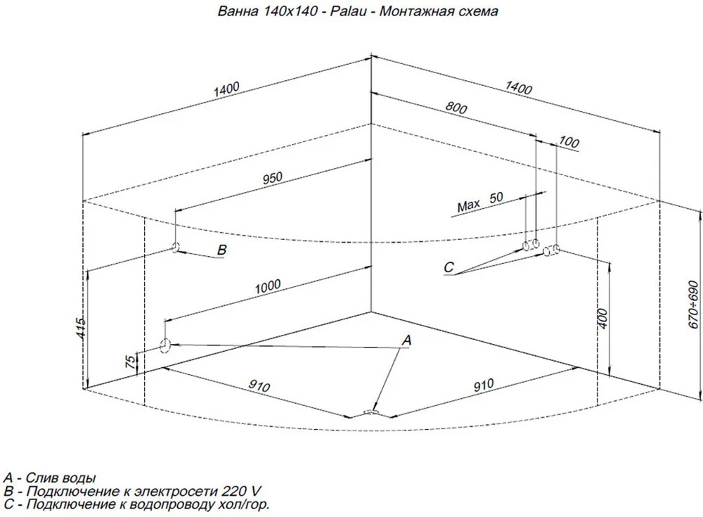 Акриловая ванна Aquanet Palau 140x140 (с каркасом) 00205535