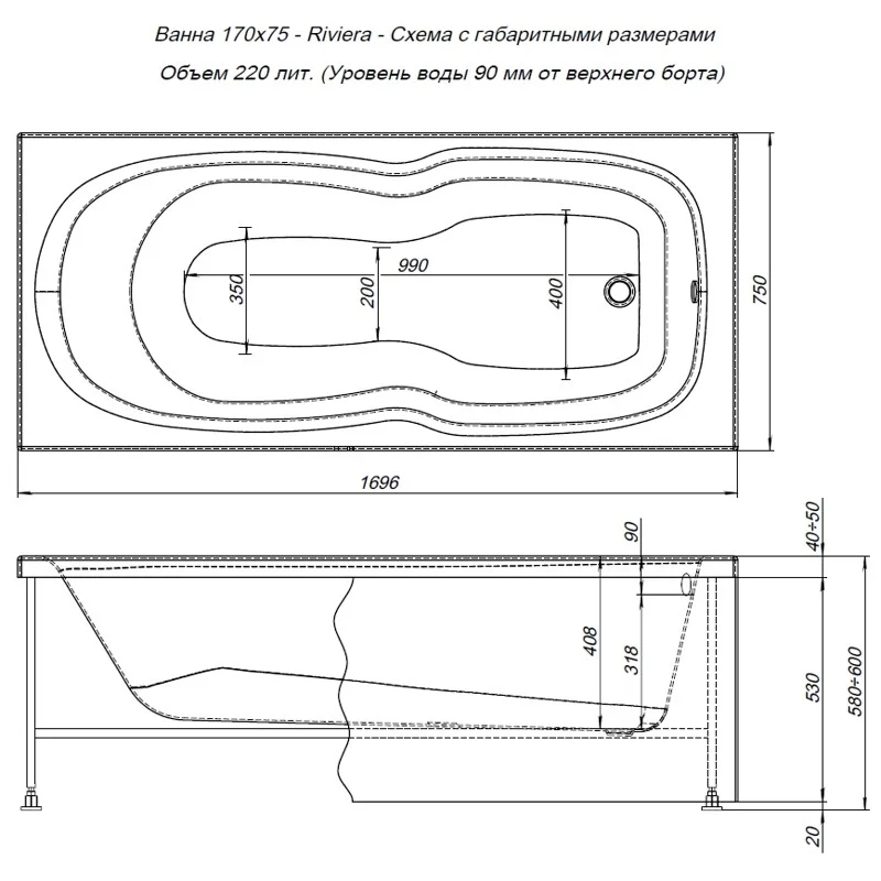Акриловая ванна Aquanet Riviera 170x75 в одном из самых востребованных размерах выполнена в классической прямоугольной форме и имеет очень комфортную чашу в виде песочных часов. В такой ванне можно погрузиться в релакс, почувствовав себя хоть ненадолго на Ривьере. Способствует тому и гладкий, способный долго сохранять тепло материал, и удобная форма ванны, и вполне комфортная глубина – 408 мм. Объем ванны в 220 литров достаточен для того, чтобы человеку среднего роста и средних габаритов полностью погрузить в ванну тело, не испытывая неудобств. Ванна выполнена из современного инновационного материала, соединившего АБС и ПММА, произведенного в Ирландии. Основа его – акрил, но не литьевой, который при довольно высокой стоимости имеет определенные ограничения при производстве изделий из него и дальнейшей их эксплуатации. Современный материал имеет все достоинства акрила с добавлением прочностных характеристик АБС. Ванна обладает улучшенными характеристиками по прочности и эластичности по