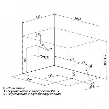 Фронтальная панель, каркас или ножки (на выбор), а также слив-перелив в стоимость не входят.