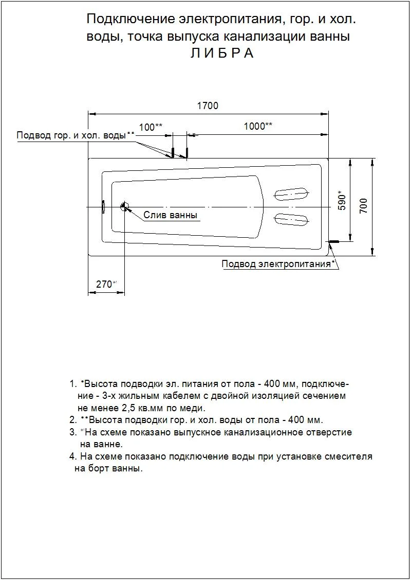 Диаметр слива канализации, мм