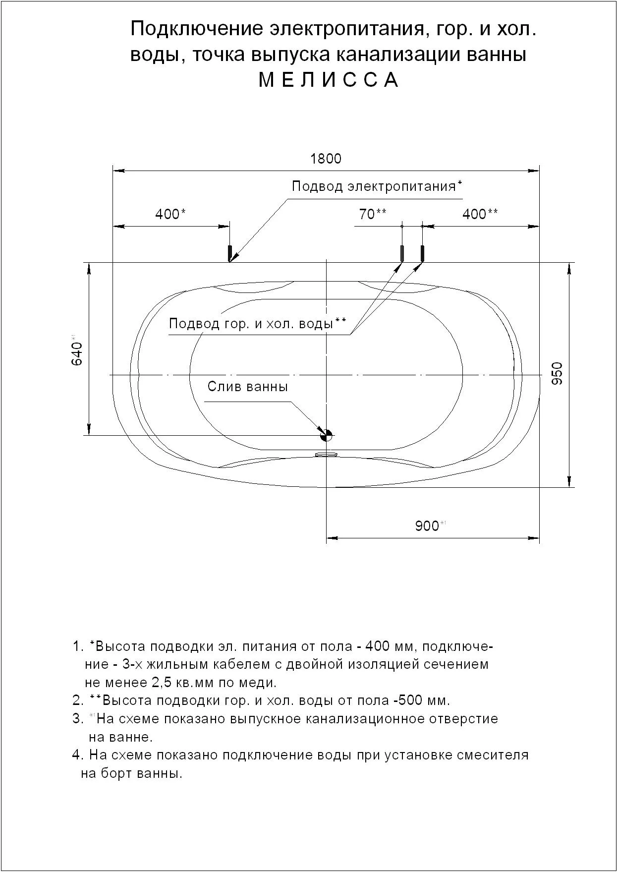 Диаметр слива канализации, мм