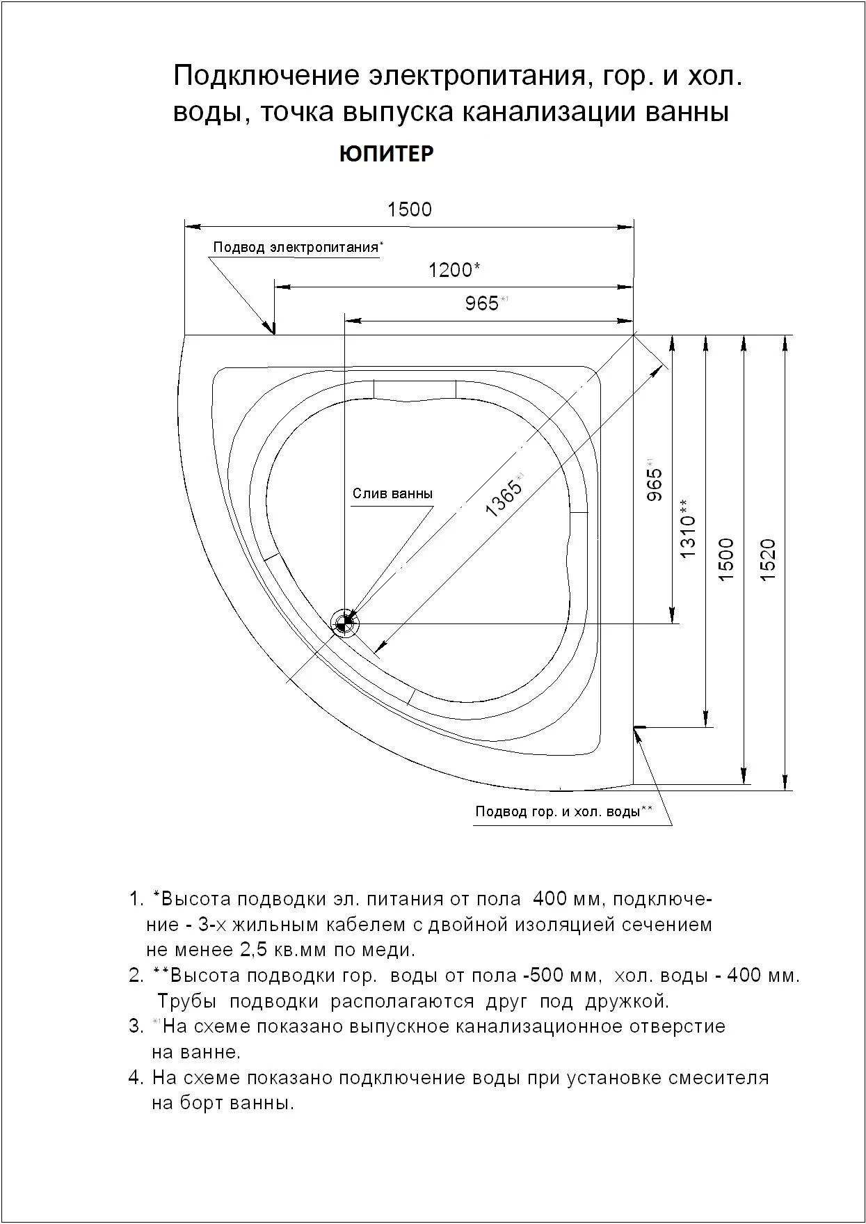 Диаметр слива канализации, мм