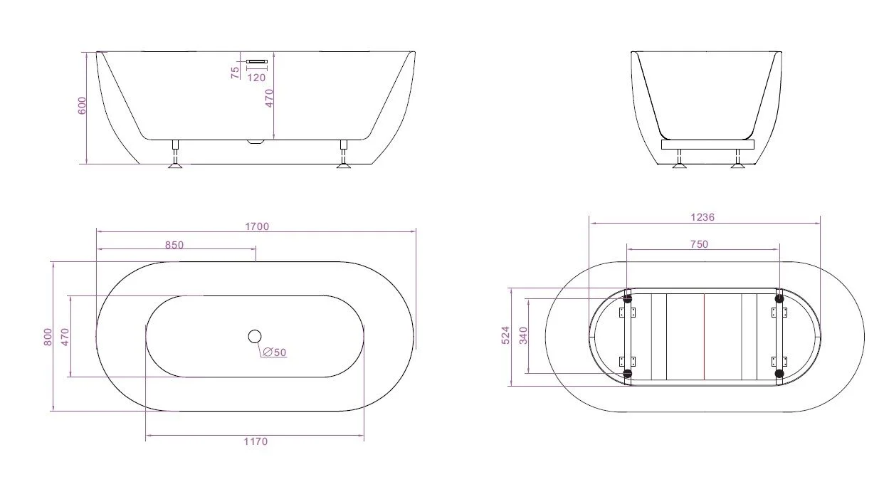 Ванна отдельностоящая BelBagno BB70-1700-800 1700x800 акриловая
