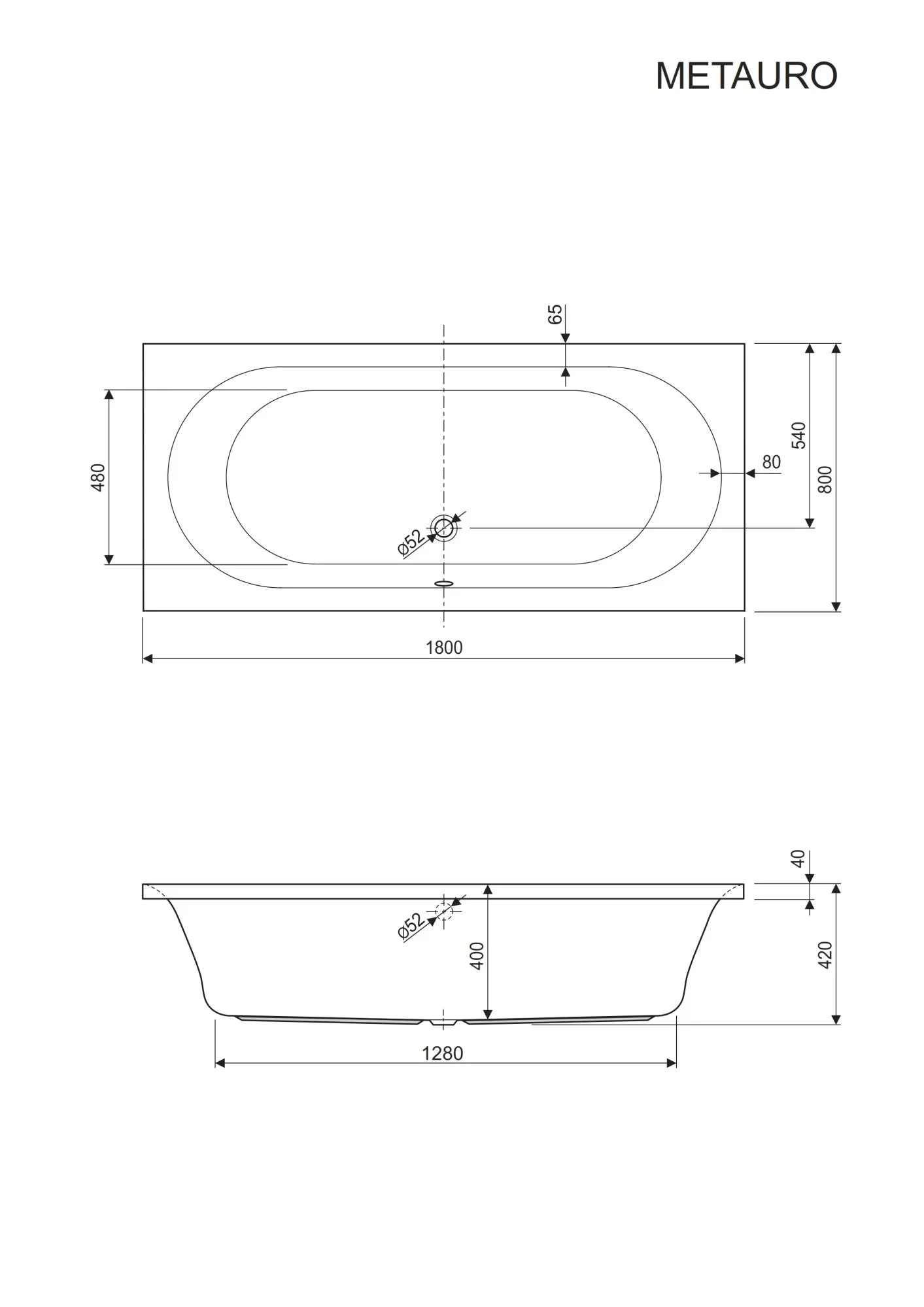 Акриловая ванна CEZARES METAURO-180-80-41-W37 1800x800 мм