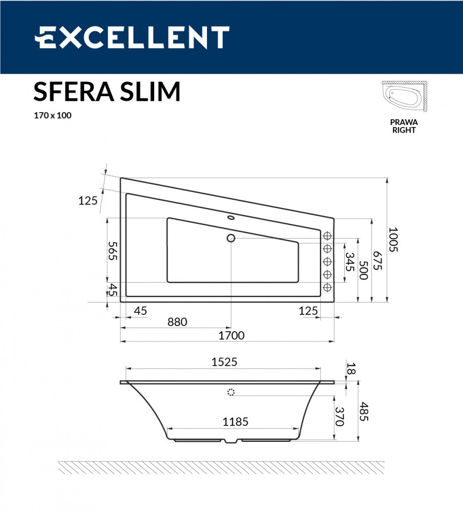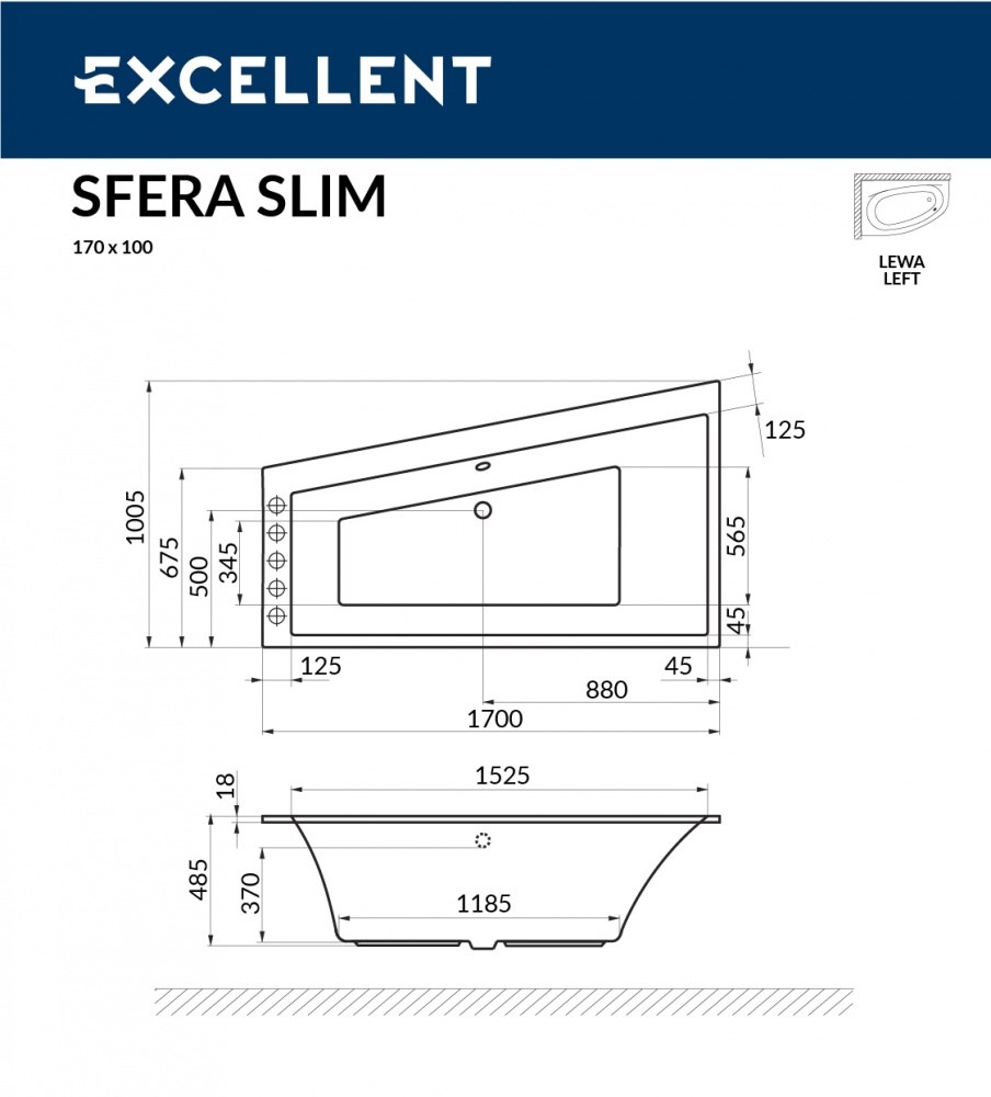 Ванна акриловая Excellent Sfera (Сфера) Slim 170*100 см
