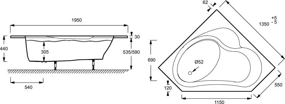Высота ножек, мм: 95-140