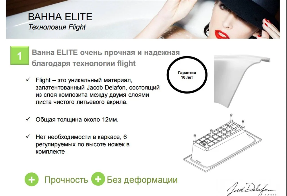 Поэтому при установке ванны Elite не требуется каркас для поддержки.