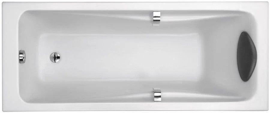 Эргономичная ванна с черной подушкой для максимального комфорта. В комплекте с хромированными ручками. Укомплектована регулируемыми ножками.
