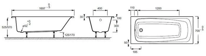 Patio 170х70см, ванна, акриловая, прямоугольная, арт. E6812RU-01, Jacob Delafon