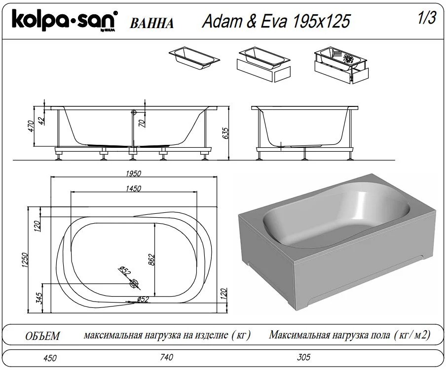 Акриловая ванна Kolpa-San ADAM EVA 195x125 5932009