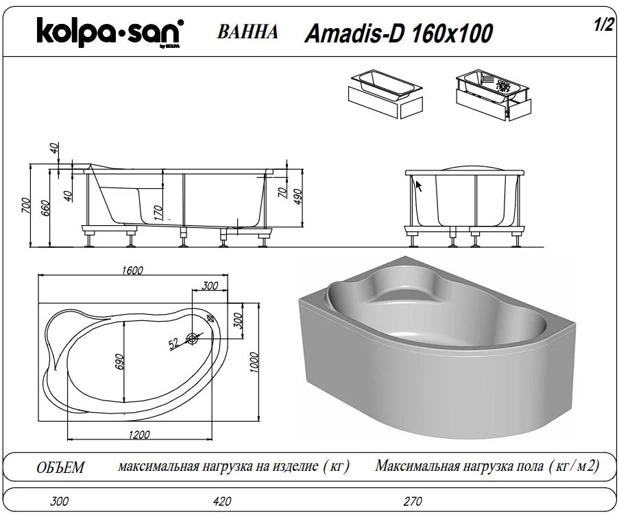 Акриловая ванна Kolpa-San AMADIS 160x100 D 567320
