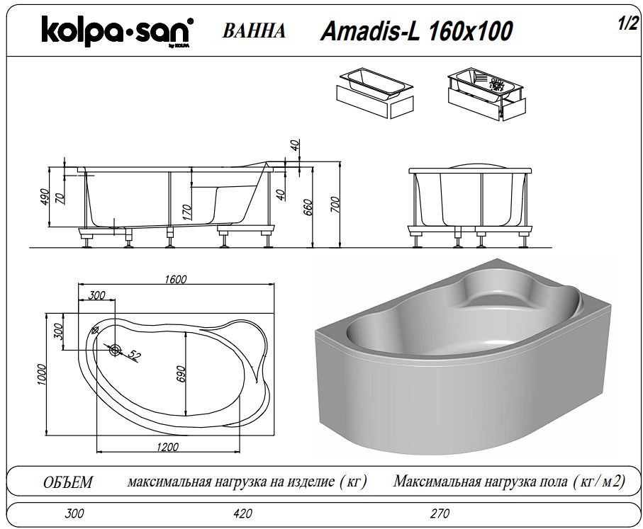 Акриловая ванна Kolpa-San AMADIS 160x100 L 567330