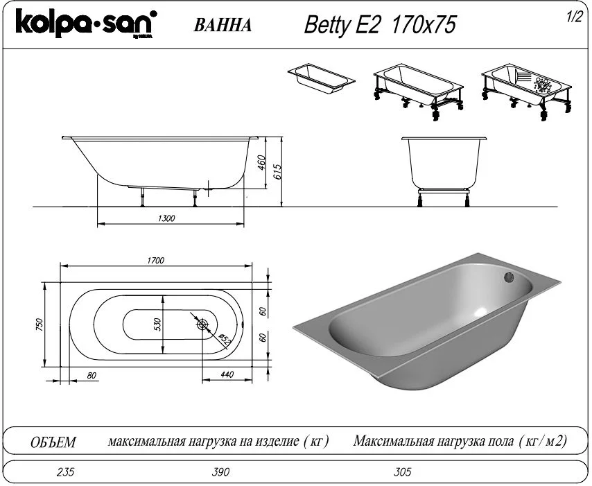 Акриловая ванна Kolpa-San BETTY E2 170x75 567790
