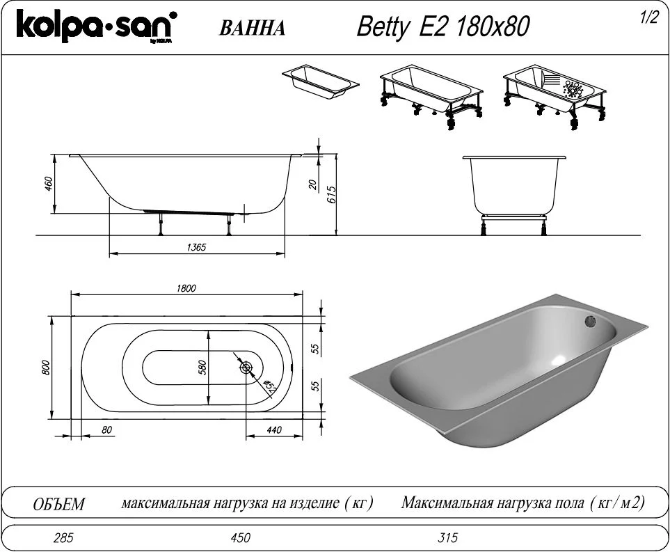Акриловая ванна Kolpa-San BETTY E2 180x80 567810