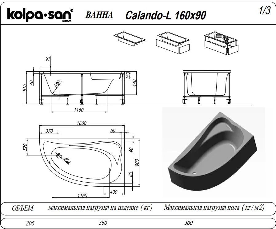 Акриловая ванна Kolpa-San CALANDO 160x90 L 5190309