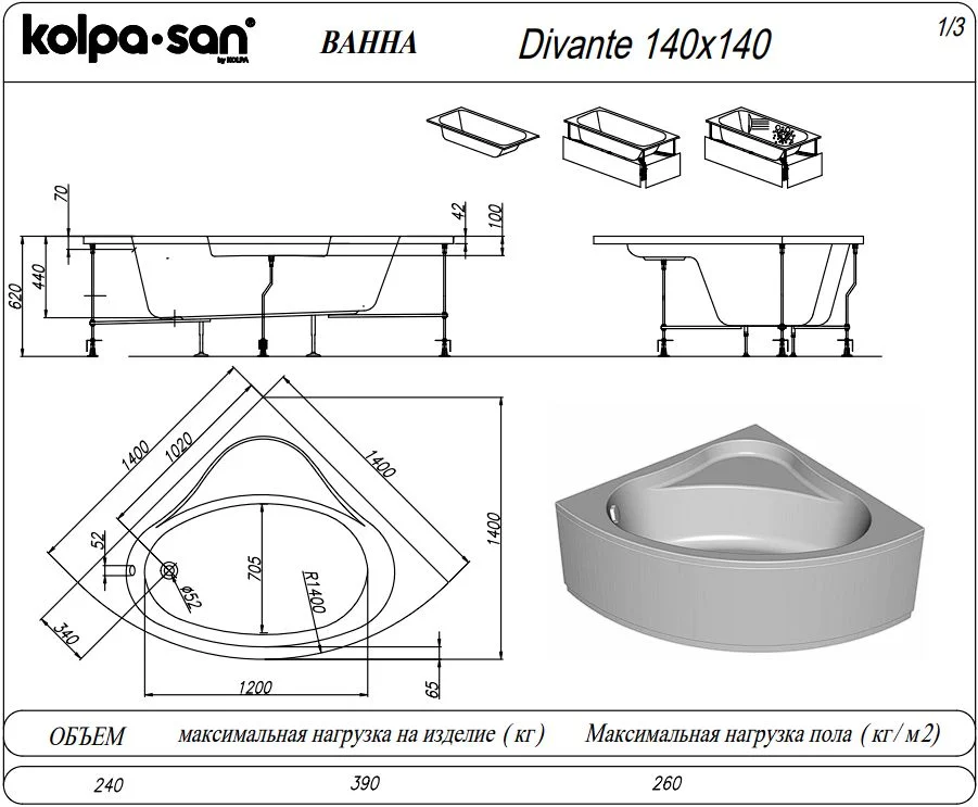 Акриловая ванна Kolpa-San DIVANTE 140x140 5628709