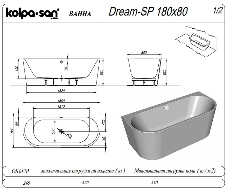 Акриловая ванна Kolpa-San DREAM SP 180x80 567680