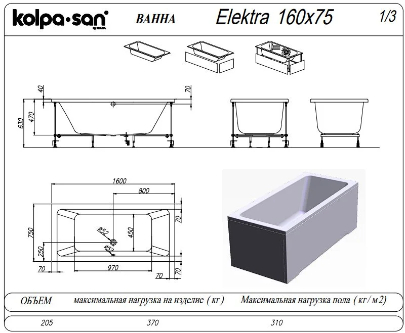 Акриловая ванна Kolpa-San ELEKTRA 160x75 740700