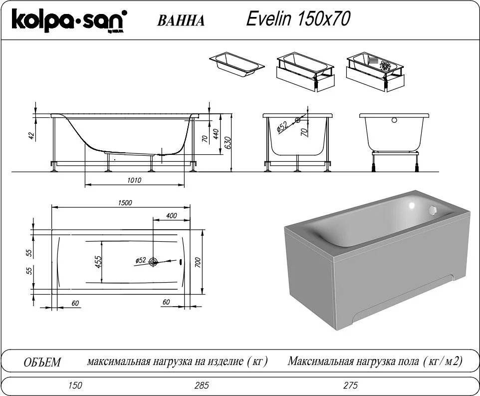 Акриловая ванна Kolpa-San EVELIN 150x70 590270