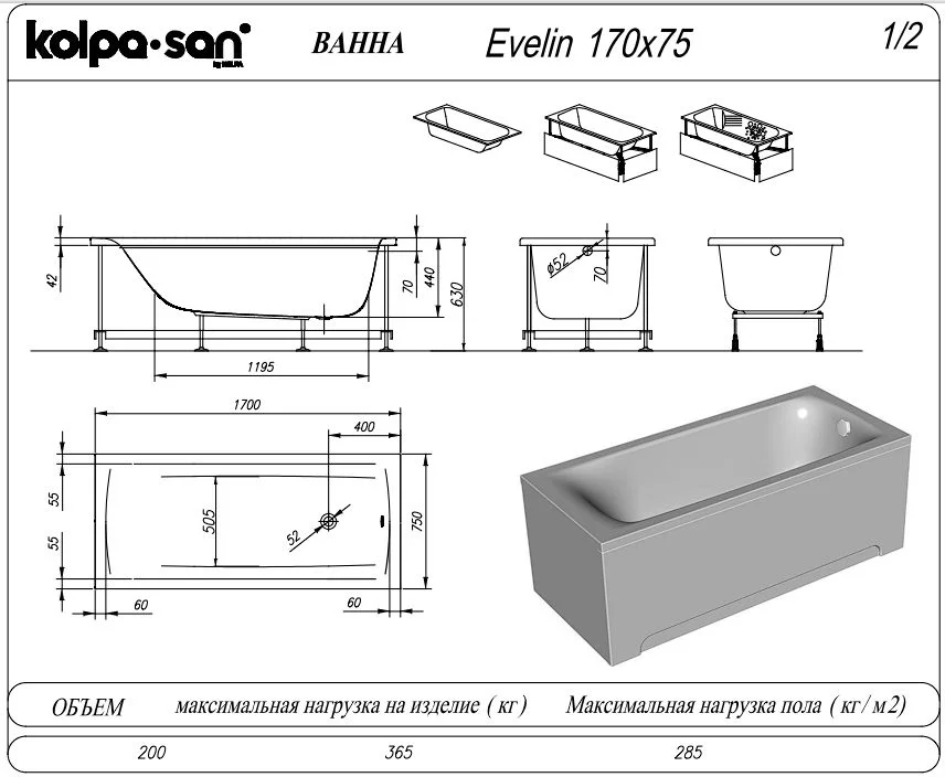 Акриловая ванна Kolpa-San EVELIN 170x75 590240