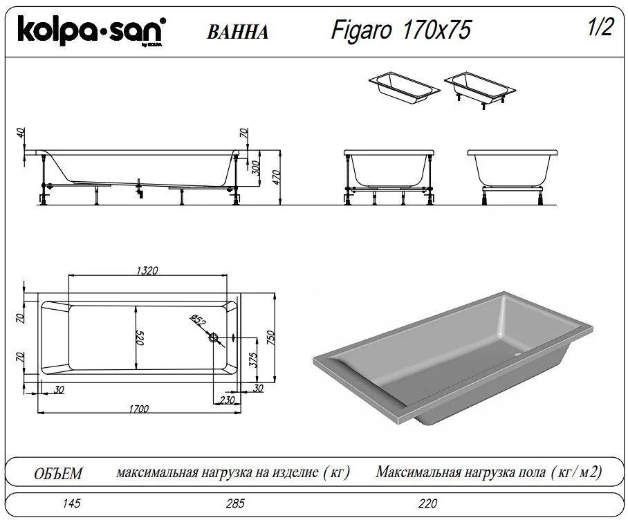 Акриловая ванна Kolpa-San FIGARO 170x75 741430