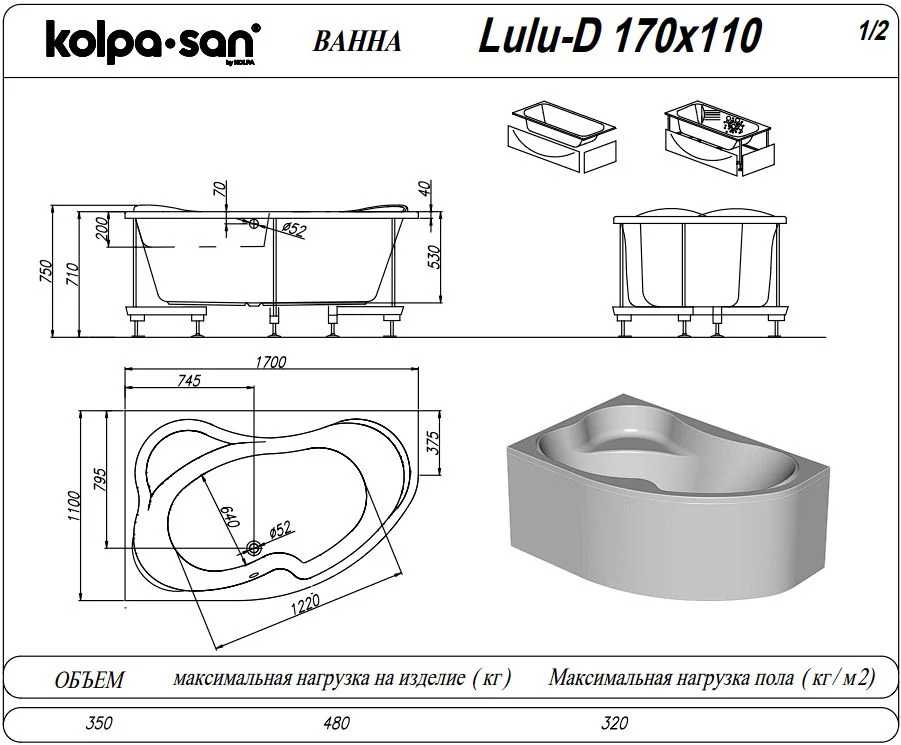 Акриловая ванна Kolpa-San LULU 170x110 D 597370