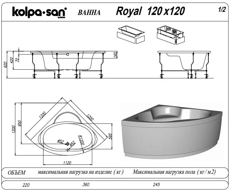 Акриловая ванна Kolpa-San ROYAL 120x120 5628209