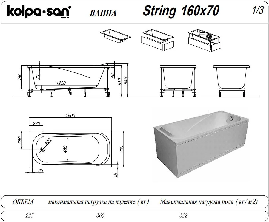 Акриловая ванна Kolpa-San STRING 160x70 534370