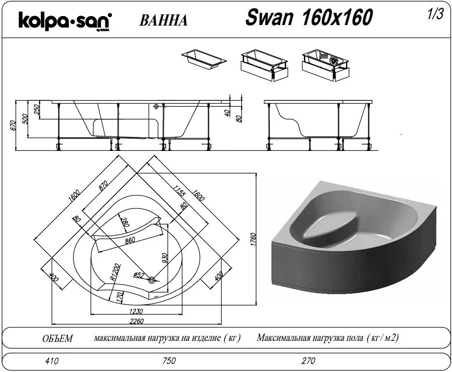 Акриловая ванна Kolpa-San SWAN 160x160 9923509