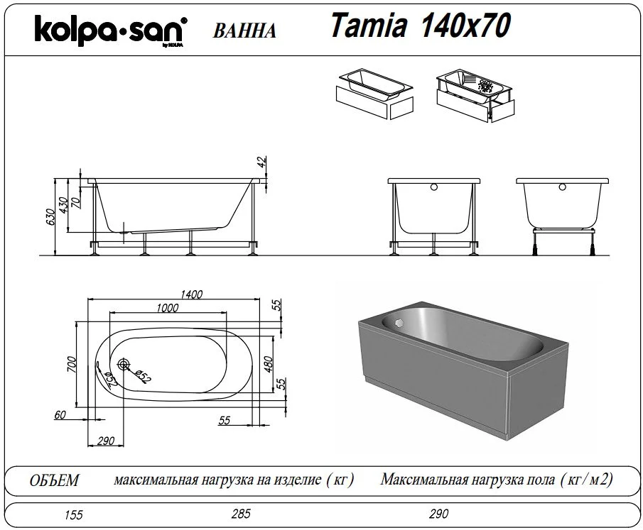 Акриловая ванна Kolpa-San TAMIA 140x70 563000