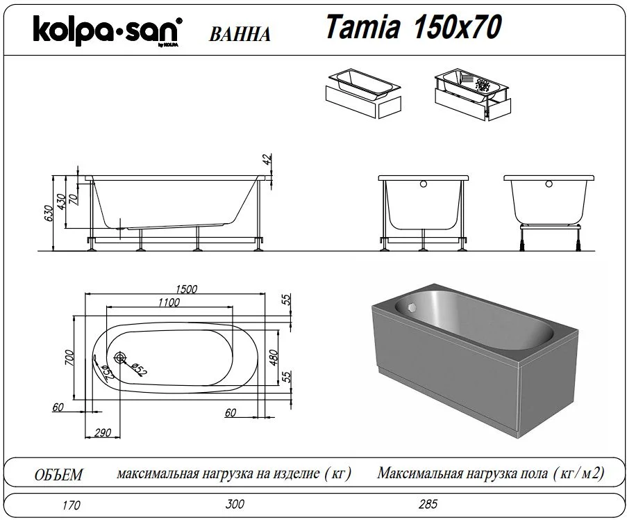 Акриловая ванна Kolpa-San TAMIA 150x70 531210