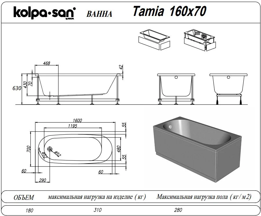 Акриловая ванна Kolpa-San TAMIA 160x70 531300