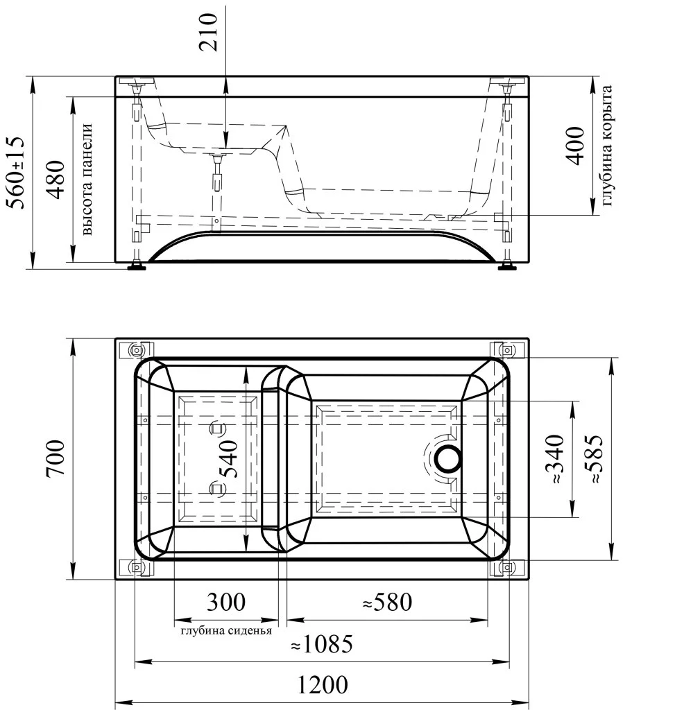 Акриловая ванна Radomir Джоанна 120х70 2-01-0-0-1-253Р, каркас разборный