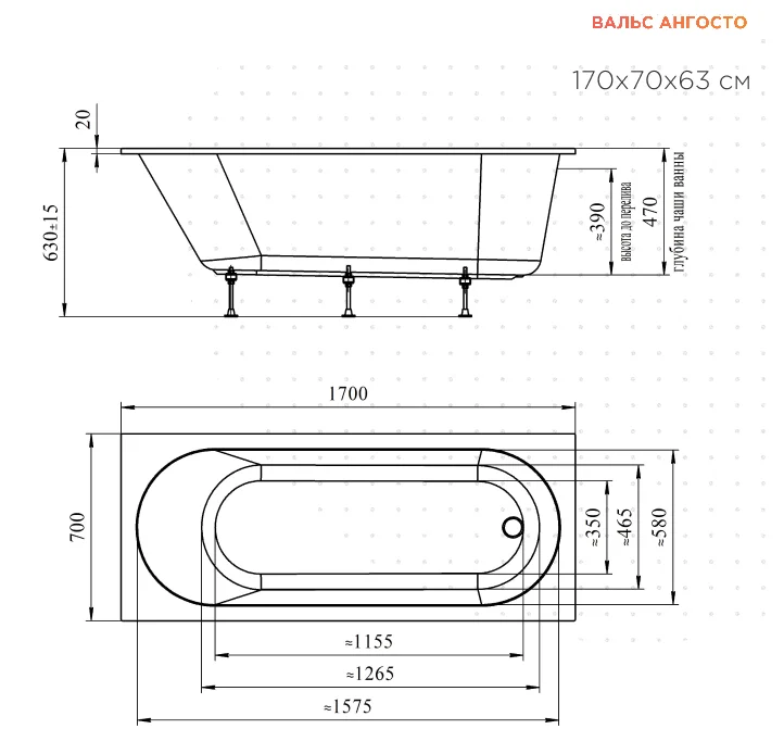Акриловая ванна Radomir Вальс 170х70 Ангосто 1-01-0-0-8-336