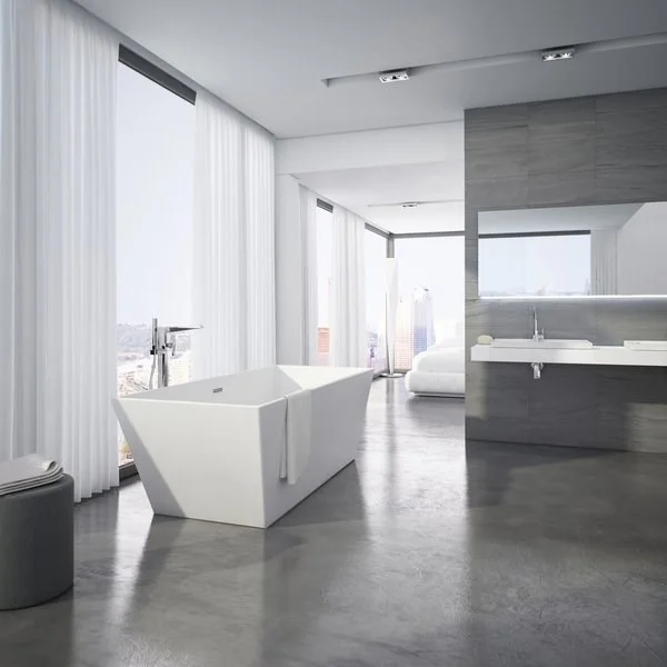 Все коммуникации должны прокладываться ниже уровня пола (сток, выводы холодной/горячей воды для напольного смесителя). В комплектацию изделия входят ножки, перелив и слив. Сточный комплект для ванны докупается отдельно.