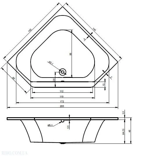 Купить Акриловые ванны производства Riho, код товара: 153308 можно выгодно в Сантемо.ру: