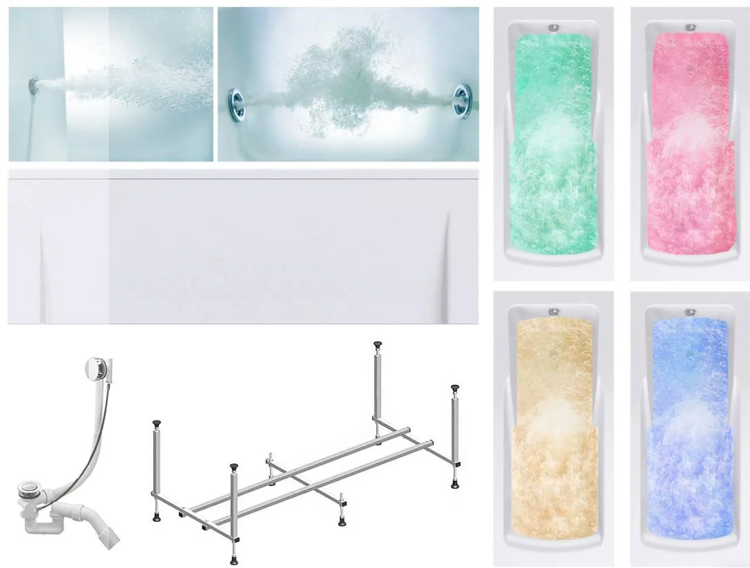 Акриловая ванна Timo HELLA HELLA1575-KT15-SPV1505-T-CM-T-BM-T-CT-FP15H 150x75 гидромассажная 6 джет, гидромассаж спины 3 джет, хромотерапия