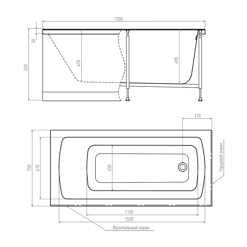 Акриловая ванна Timo RITTA1775 (1700x750x630)
