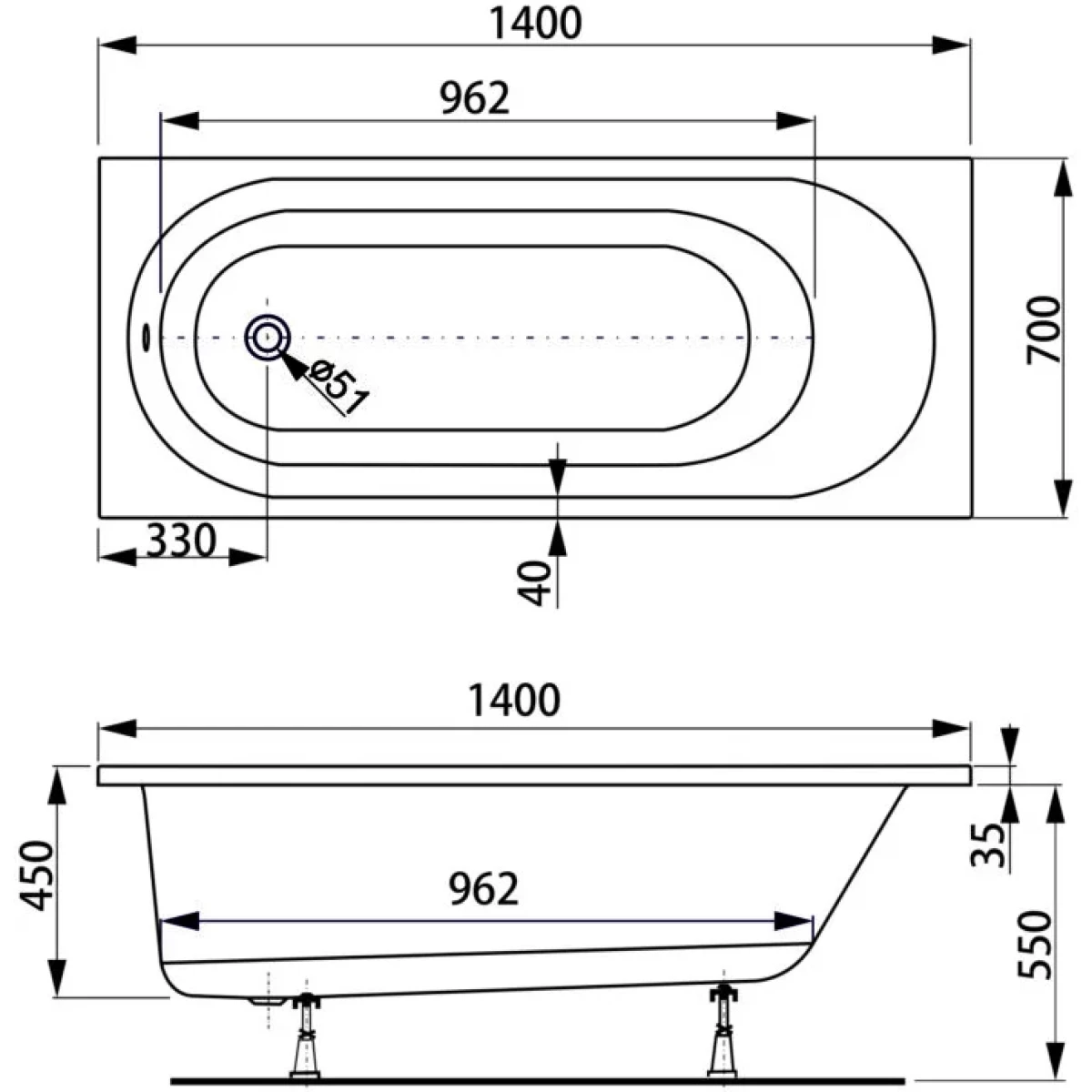 Диаметр слива канализации, мм
