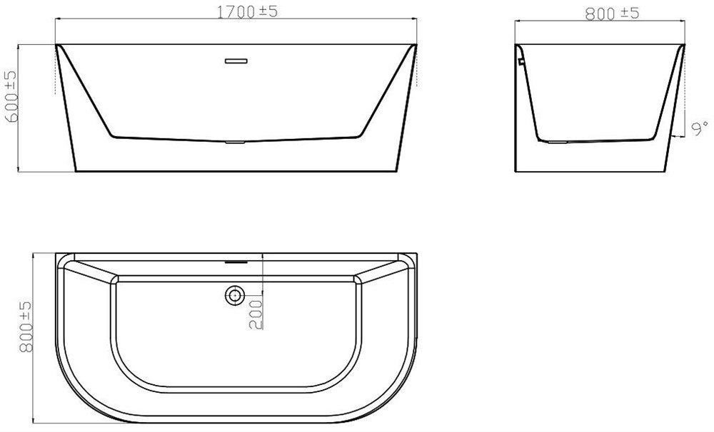 Акриловая ванна Vincea VBT-221, 1700x800x580 белая