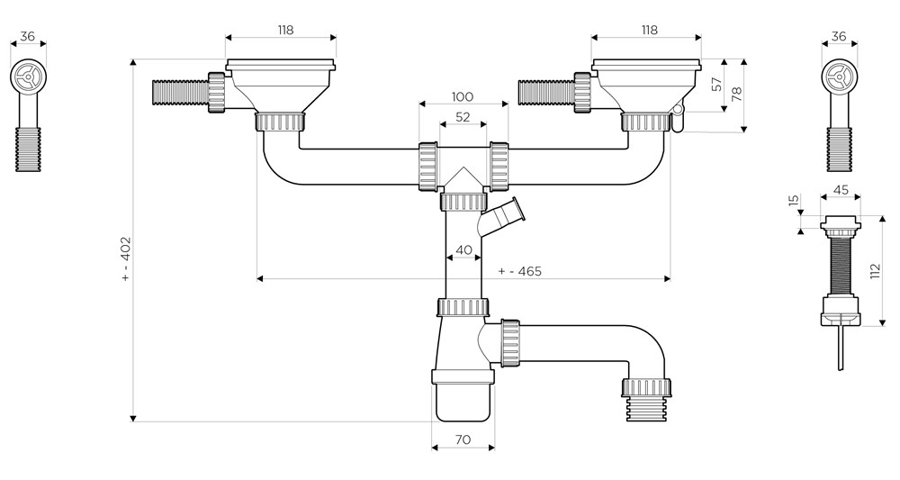 Клапан-автомат для двухчашевых моек с двумя переливами A-02-AB-4 служит для отвода воды из чаши мойки. Решетка в сливном отверстии выполняет функцию фильтра и не дает крупным частицам попасть в отводящую трубу. • Квадратная ручка управления устанавливается на мойке или столешнице