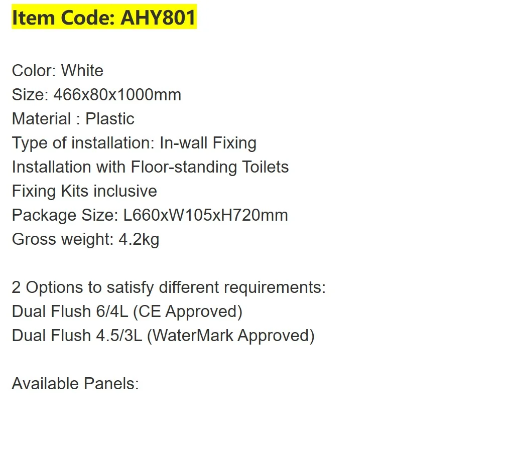 Бачок скрытого монтажа ARROW AHY801